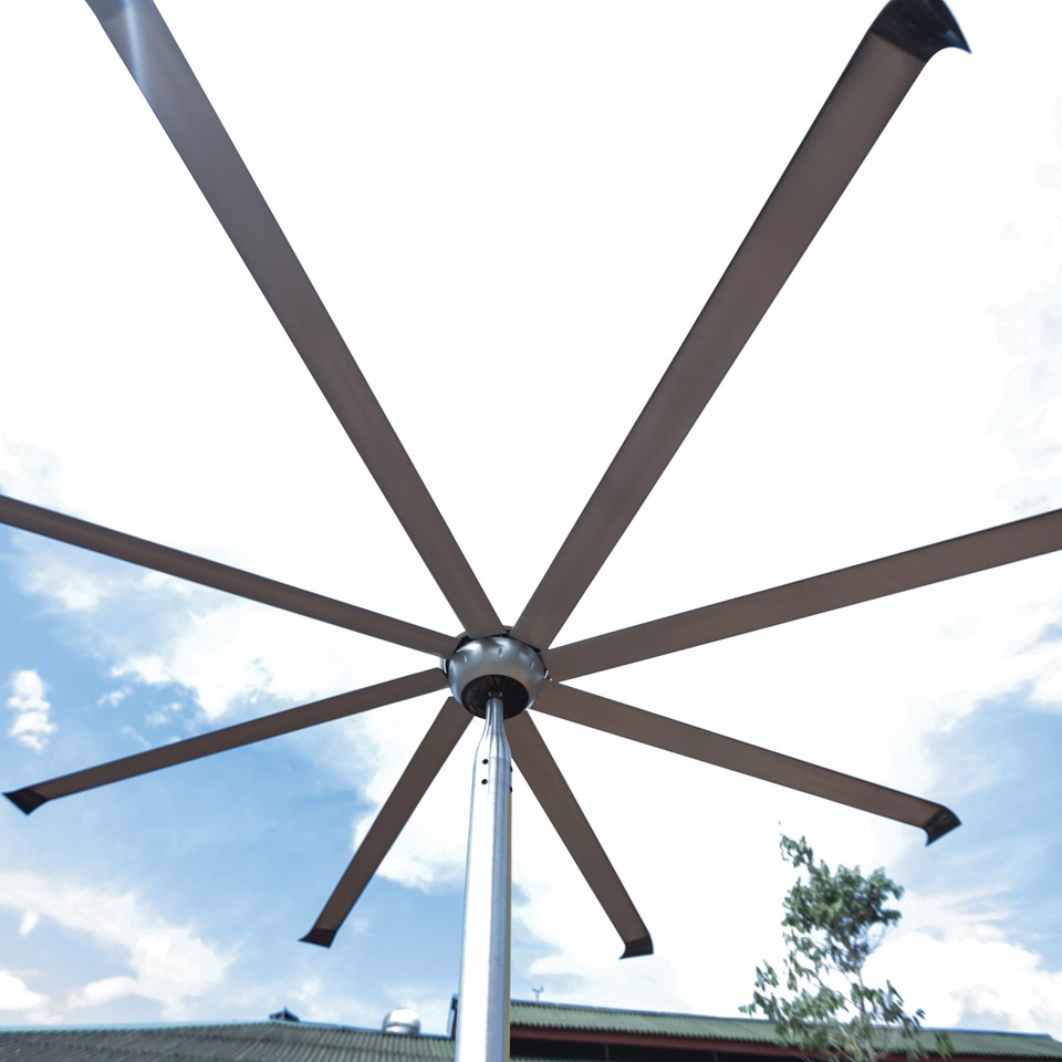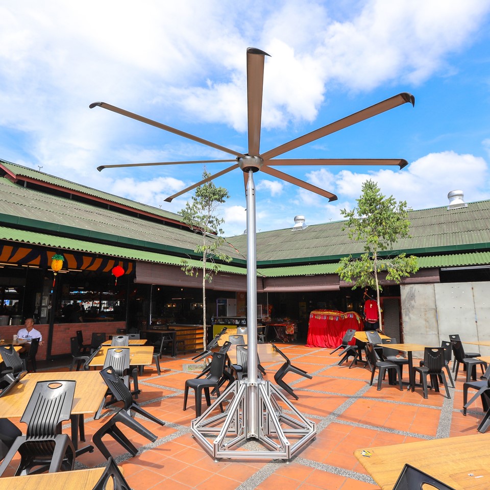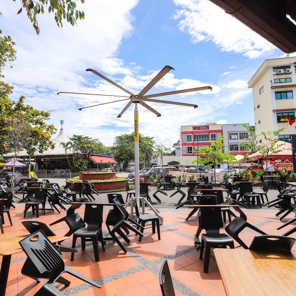 From the ground up pole instead of the orthodox fan design which hangs down from the ceiling, it is now able to “break more barriers” which allows it to be used at semi-outdoor and open air outdoor locations that requires air ventilation.