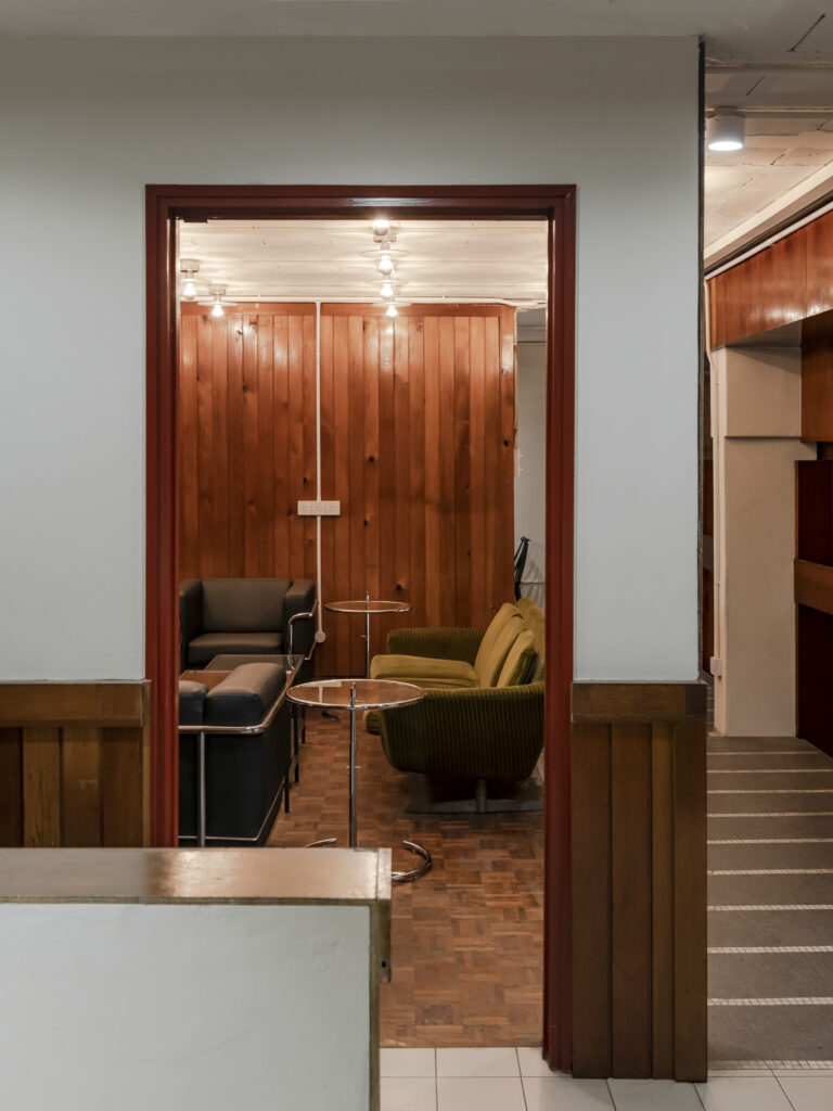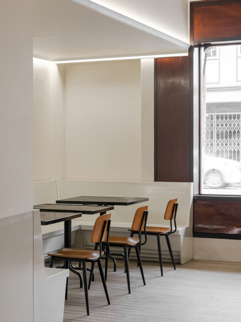 Upon entering the space, one does not feel the presence of a typical café. The original mosaic flooring from the 1960s remains intact, and the interior layout being true to its former use as an office that has been thoughtfully preserved.